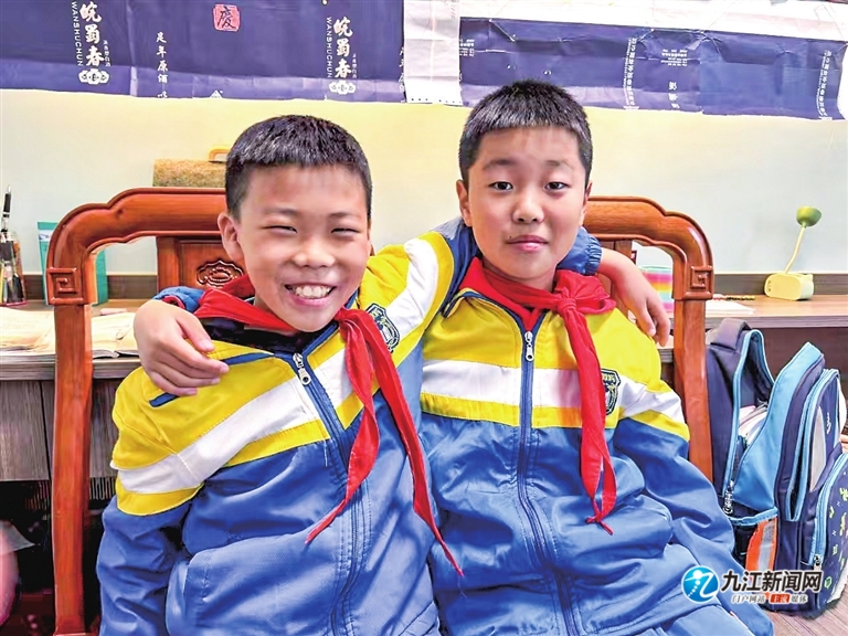 在浔阳晚报小记者队伍里,有一对兄弟,哥哥肖友睿、弟弟肖友策,他们分别在读小学六年级、四年级,哥哥阳光积极,弟弟开朗好动,兄弟俩团结友爱、努力向上,几年来,本报小记者平台一路见证了他们的成长。